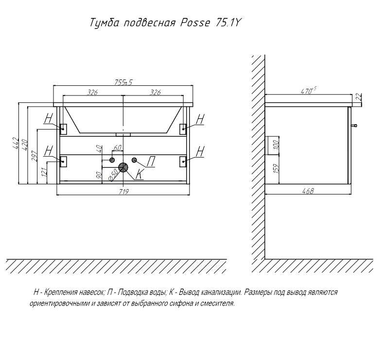 Тумба с раковиной Velvex Posse 65, 75, 85, 105 подвесная, верде