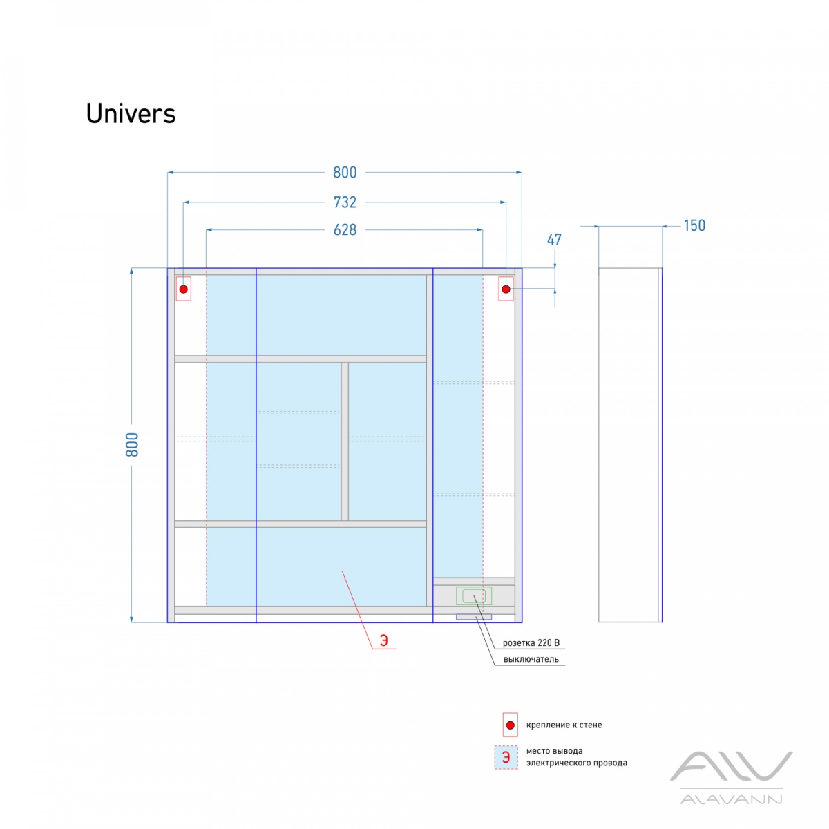 Шкаф зеркальный Alavann Univers 80, 100 белый без светильника