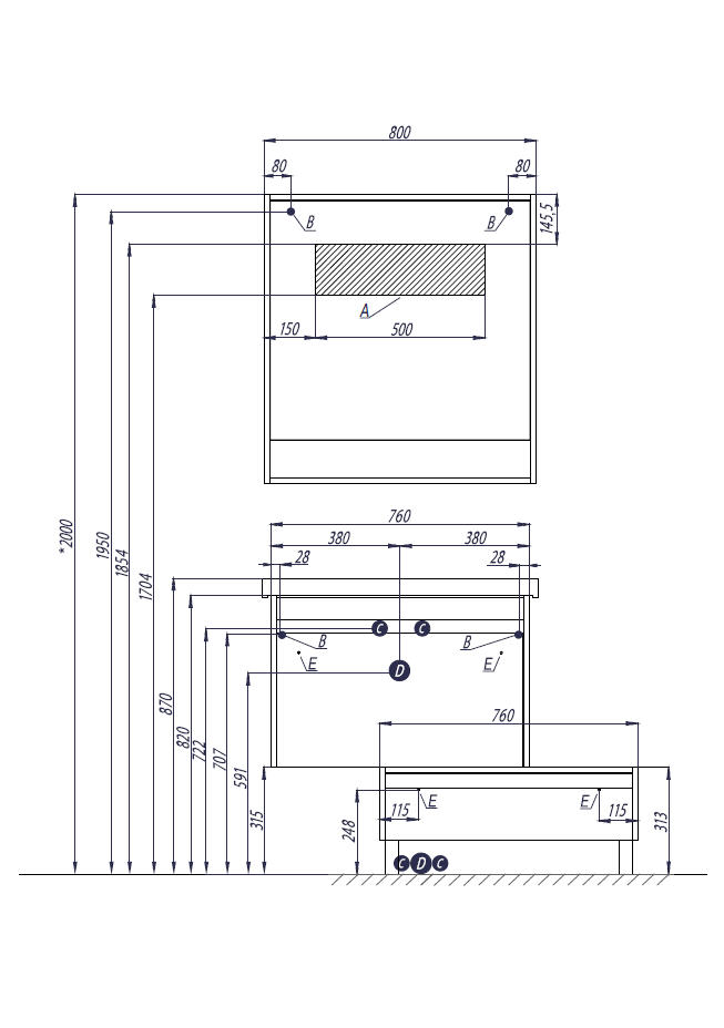 Ширина мебели, мм 800