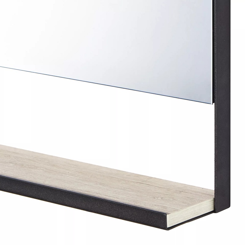 Чтобы оформить зону в едином стиле, в дополнение к тумбе-умывальнику, обратите внимание на прямоугольное зеркало из коллекции AQUATON ЛОФТ Урбан на подложке из влагостойкой плиты, обрамленное по периметру металлическим профилем и полочкой с ограничителем, который препятствует падению предметов.