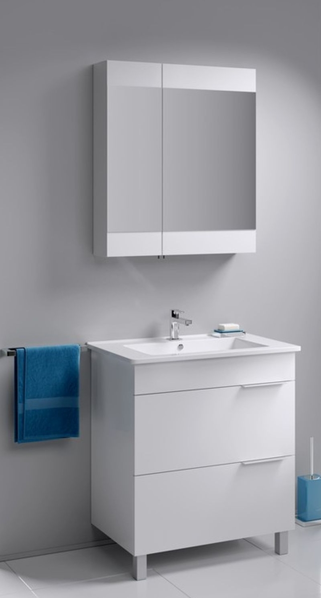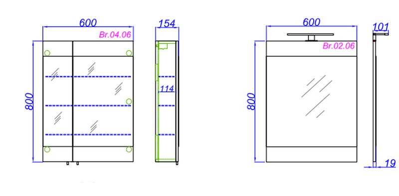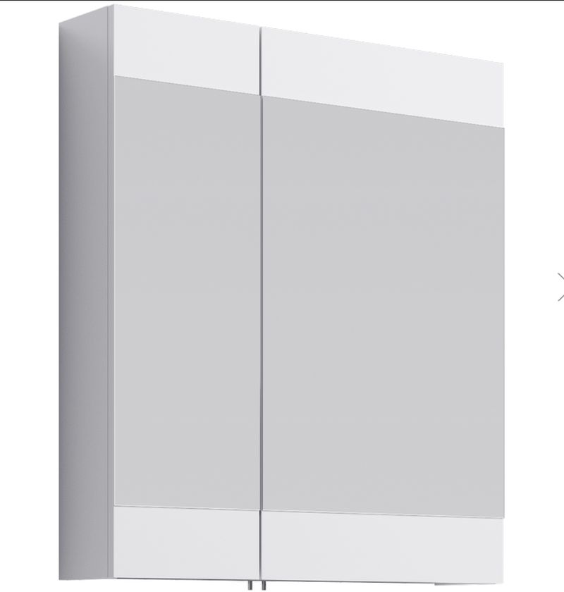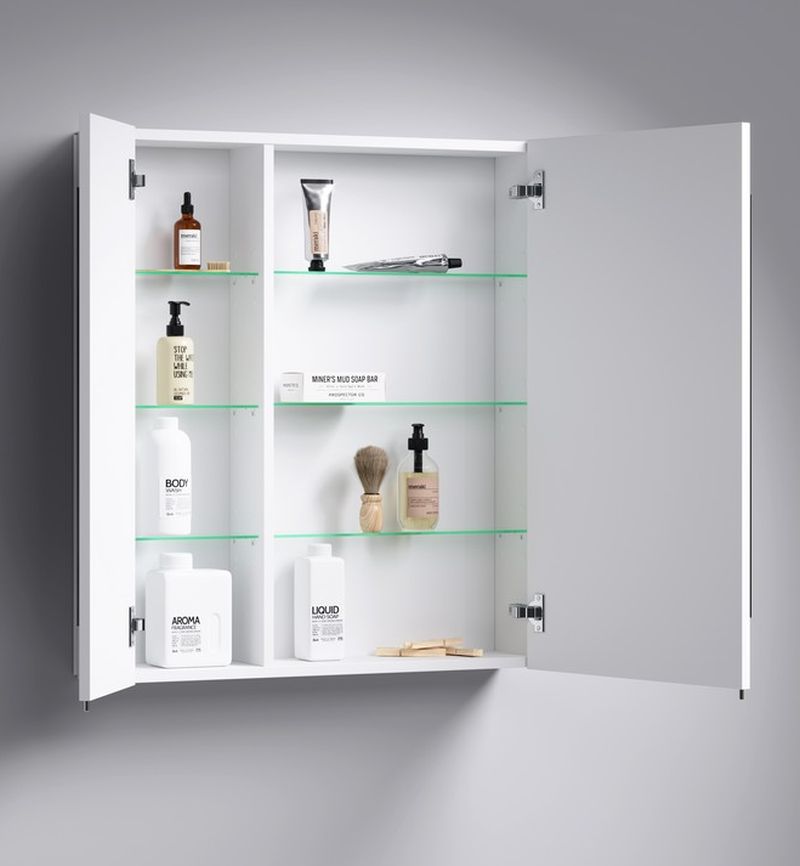 Зеркальный шкаф с двумя дверьми и внутренними стеклянными полочками