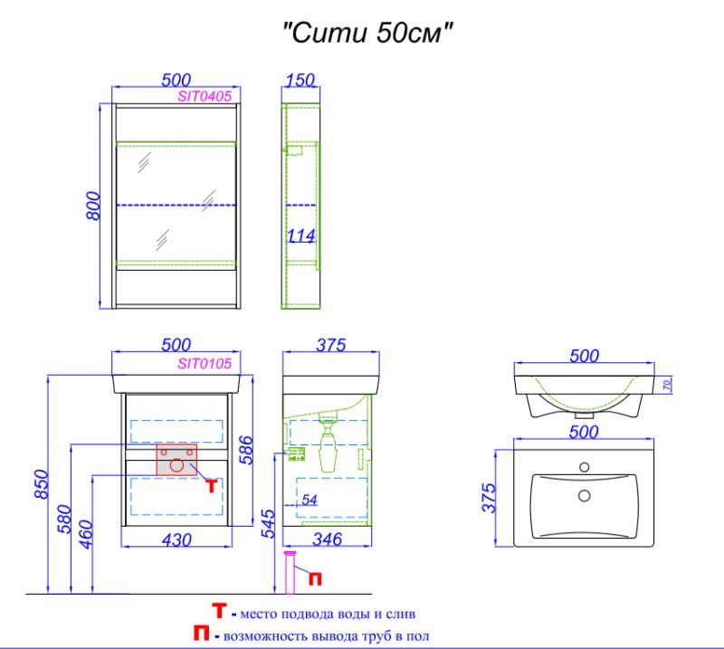 Ширина мебели, мм 500