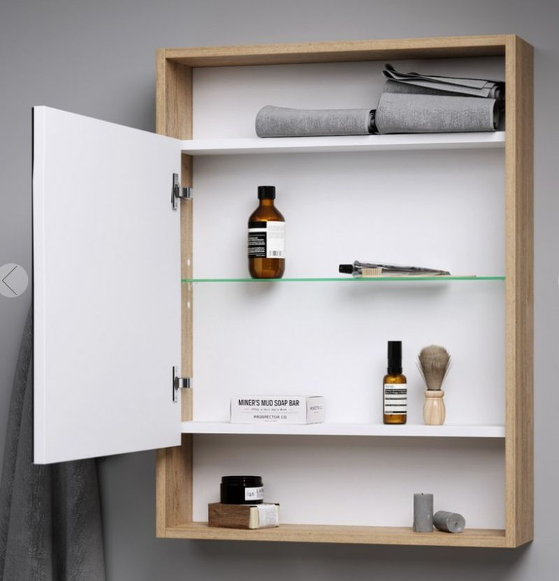 Универсальный левый/правый зеркальный шкаф с одной дверью и двумя открытыми полками