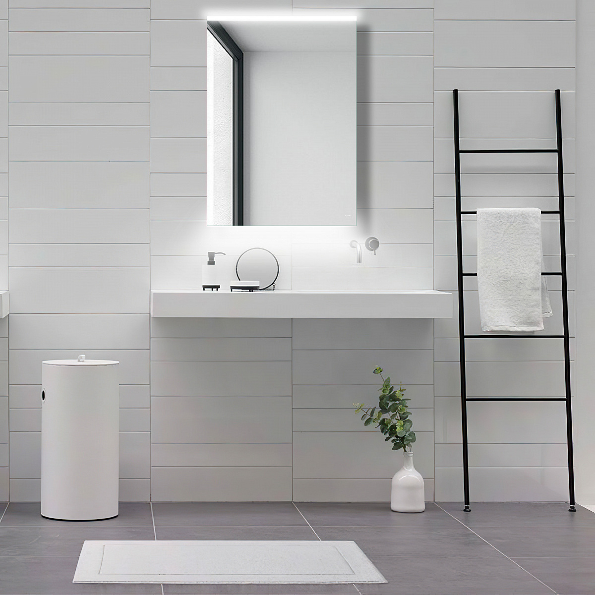 Подсветка на Зеркале-шкафчике расположена вверху и внизу.
