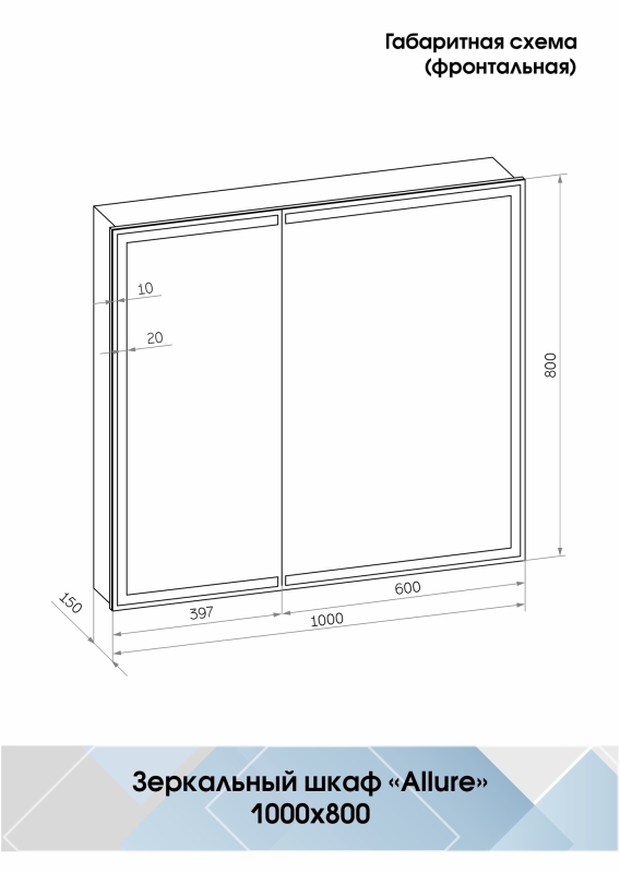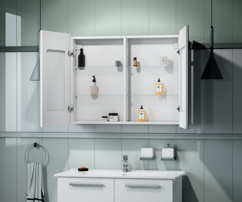 Зеркало-шкаф "Allure Led" с LED-подвесной изготовлено из зеркального полотна толщиной 4 мм производства ведущего европейского производителя зеркал AGC, материал корпуса изготовлен из влагостойкого ЛДСП + МДФ покрытого пленкой ПВХ. Дверцы шкафа оснащены фурнитурой с доводчиком для плавного закрытия дверцы. Левая и правая дверки могут меняться местами