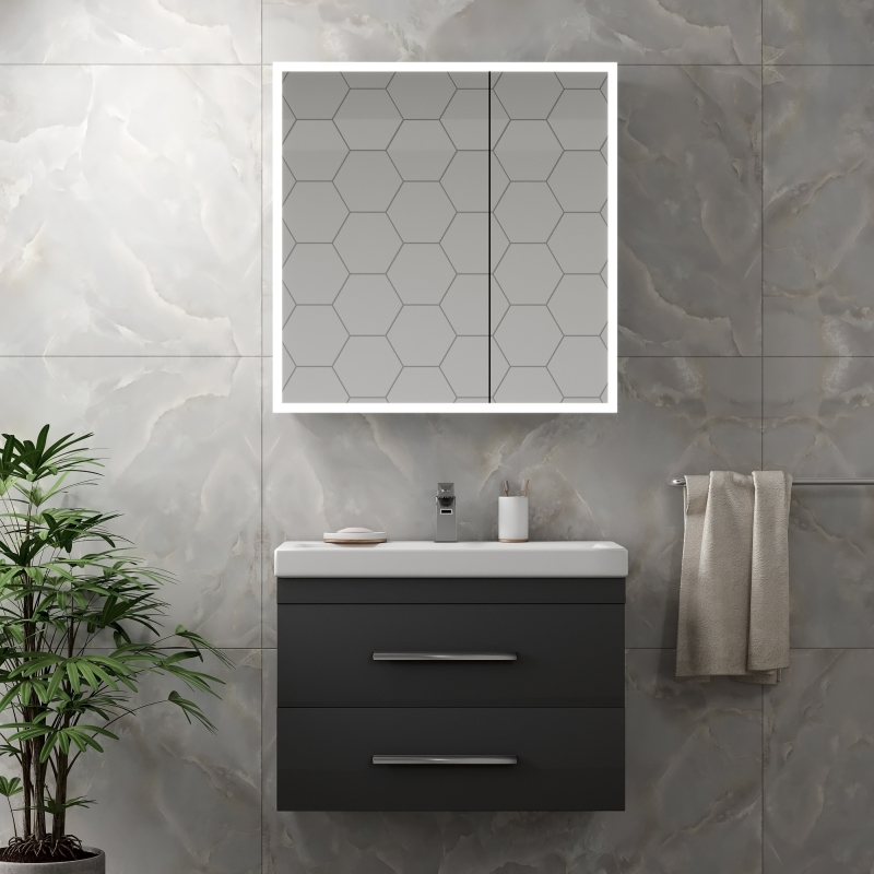 Зеркало-шкаф "Reflex LED" с LED-подвесной изготовлено из зеркального полотна толщиной 4 мм производства ведущего европейского производителя зеркал AGC, материал корпуса изготовлен из влагостойкого ЛДСП покрытого пленкой ПВХ. Дверцы шкафа оснащены фурнитурой с доводчиком для плавного закрытия дверцы. левая и правая дверки могут меняться местами