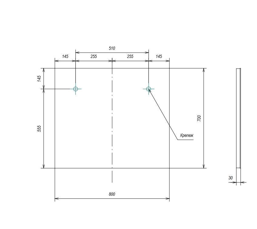 Глубина мебели, мм 30
