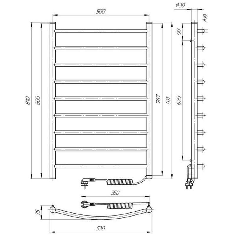 Полотенцесушитель электрический Laris Классик ЧКЧ П9 500х800 Э черный матовый правое подключение