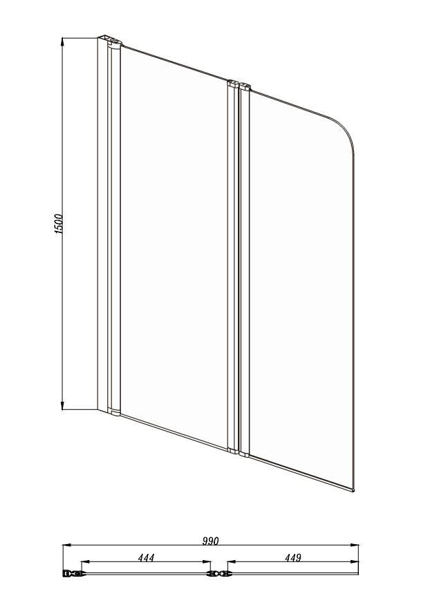 Вид шторки к прямоугольным ваннам