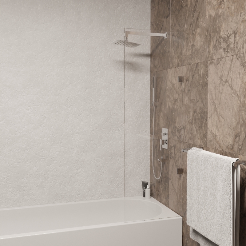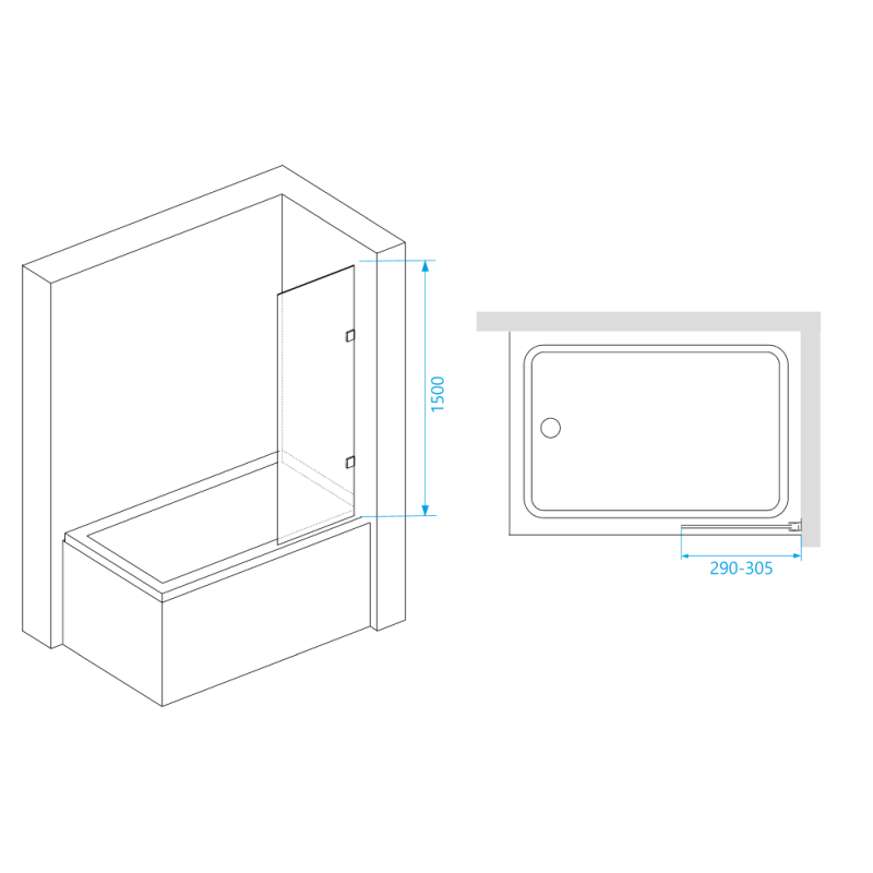 Высота стеклянной шторки составляет 1500 мм, что достаточно для большинства стандартных ванн. Конструкция створки шторки неподвижная, что обеспечивает легкость установки и удобство использования.