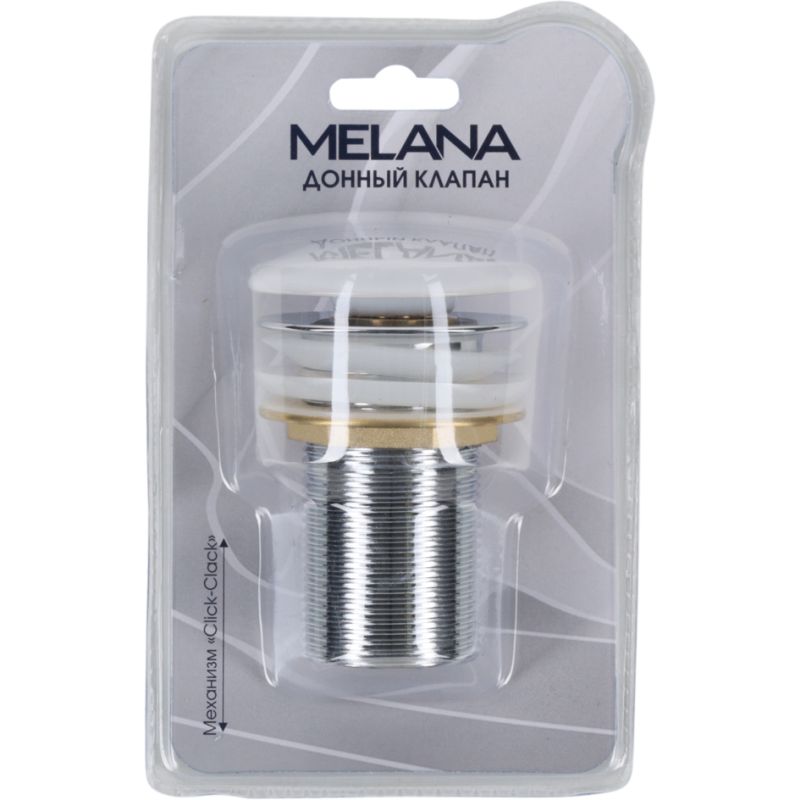Донный клапан изготовлен из долговечной латуни. Керамический диск покрыт белой глазурью. Он оснащен механизмом click-clack, который позволяет перекрыть слив и набрать воду в раковине.