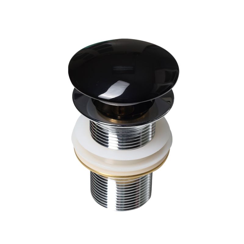 Донный клапан изготовлен из долговечной латуни. Керамический диск покрыт черной глазурью. Он оснащен механизмом click-clack, который позволяет перекрыть слив и набрать воду в раковине.