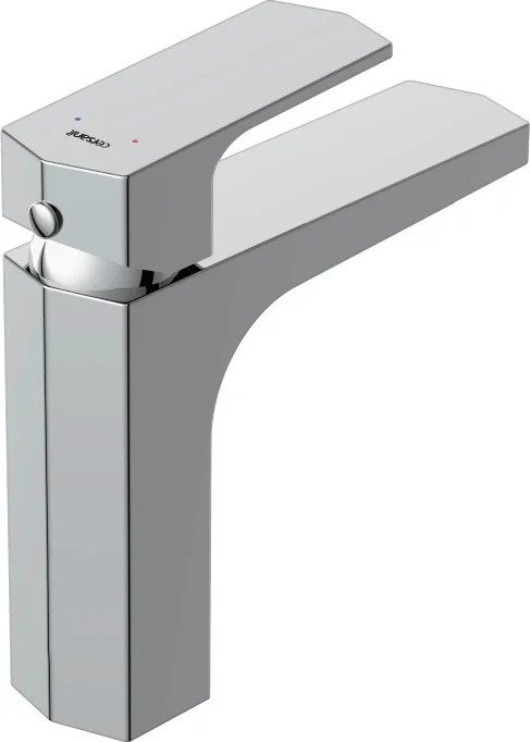 Смеситель для умывальника с геометричным дизайном и в цвете хром из долговечной латуни с добавлением 57% меди. Цельнолитой корпус выдерживает перепады давления в трубопроводе, а медь надёжно защищает от коррозии и бактерий. Если вы решите купить смеситель, гарантия 12 лет на него будет для вас приятным подарком.