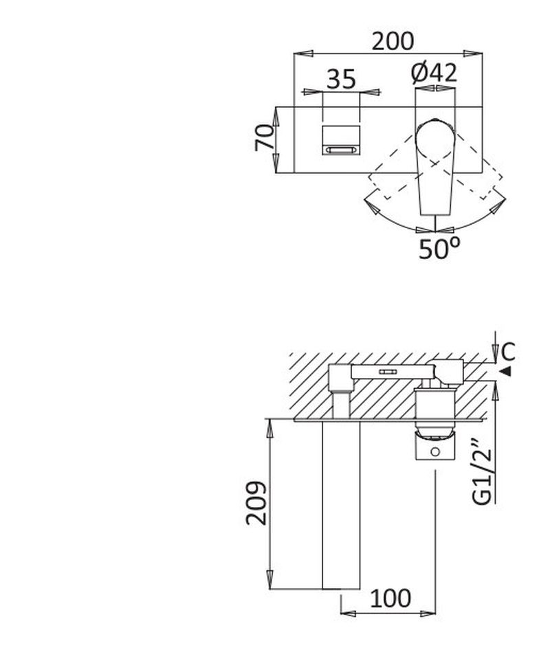 Тип подводки: внутренний (скрытый) монтаж 1/2"
