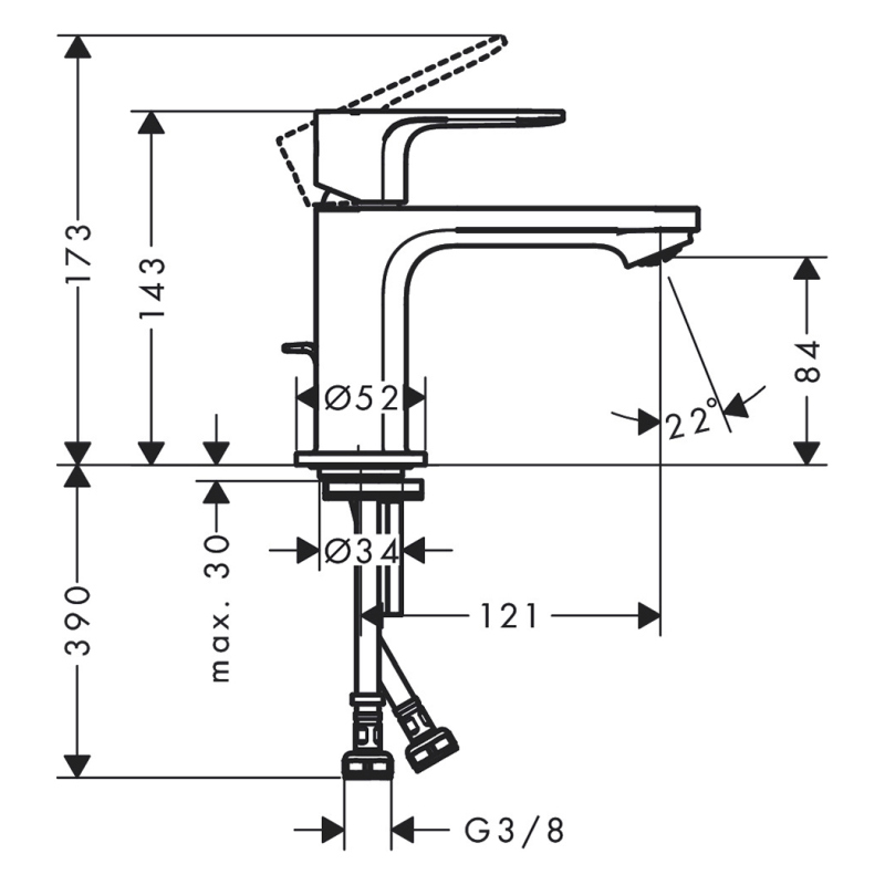 Смеситель для раковины Hansgrohe Rebris S 80 со сливным гарнитуром хром 72510000