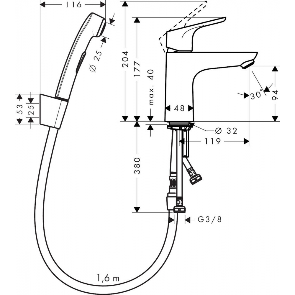 Смеситель с гигиеническим душем и донным клапаном Push-Open Hansgrohe Focus 31927000, хром