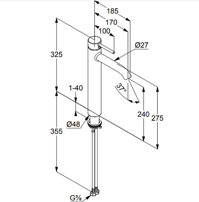 Смеситель для умывальника высокий Kludi BOZZ 382863976 черный