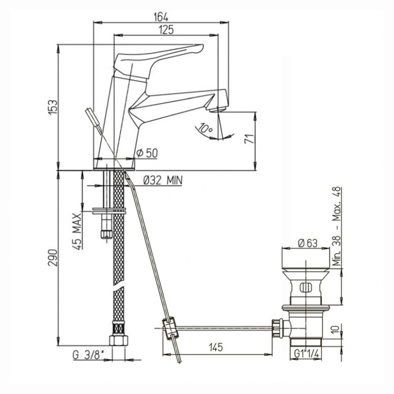 Глубина, мм 164