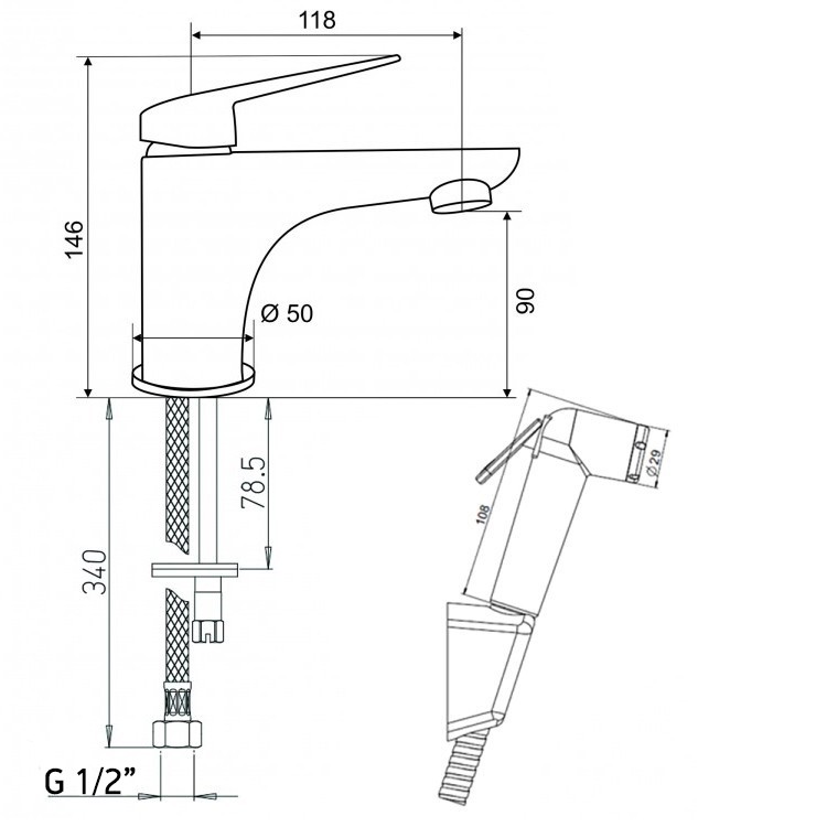 | Назначение | смеситель для раковины с гигиеническим душем | |