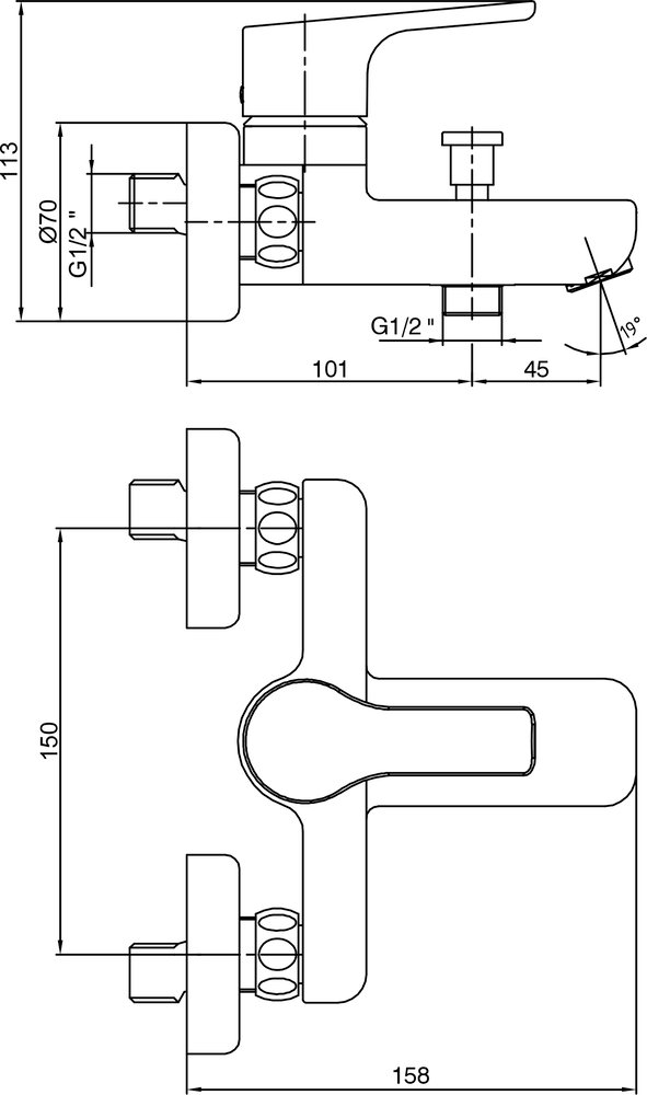 Смеситель для ванны E.C.A Luna 102102450EX хром