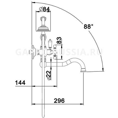 смеситель для ванны с длинным изливом