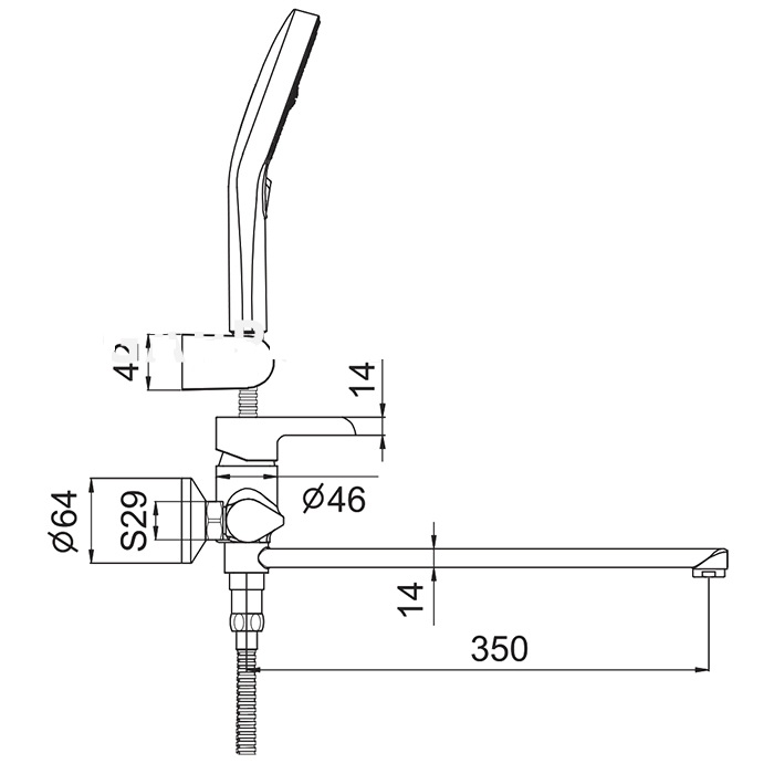 смеситель для ванны с длинным изливом