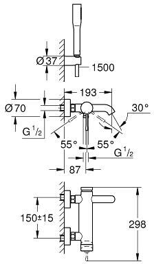 Смеситель для ванны Grohe Essence+ с душевым гарнитуром 33628001, хром