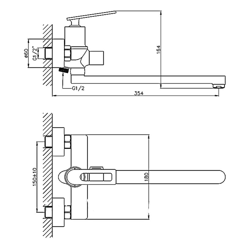 смеситель для ванны с длинным изливом