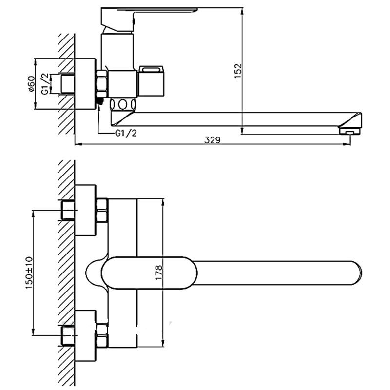 смеситель для ванны с длинным изливом