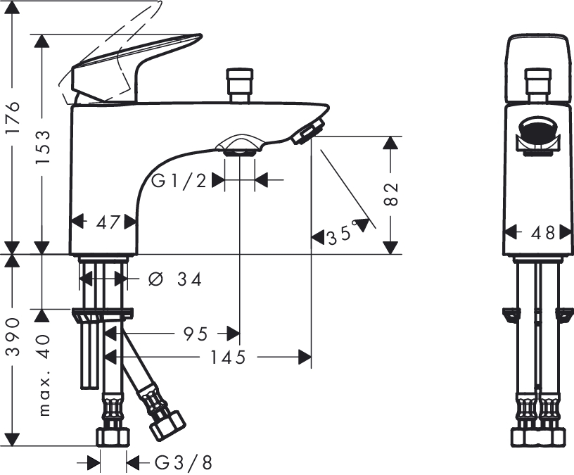 Высота излива, мм 82