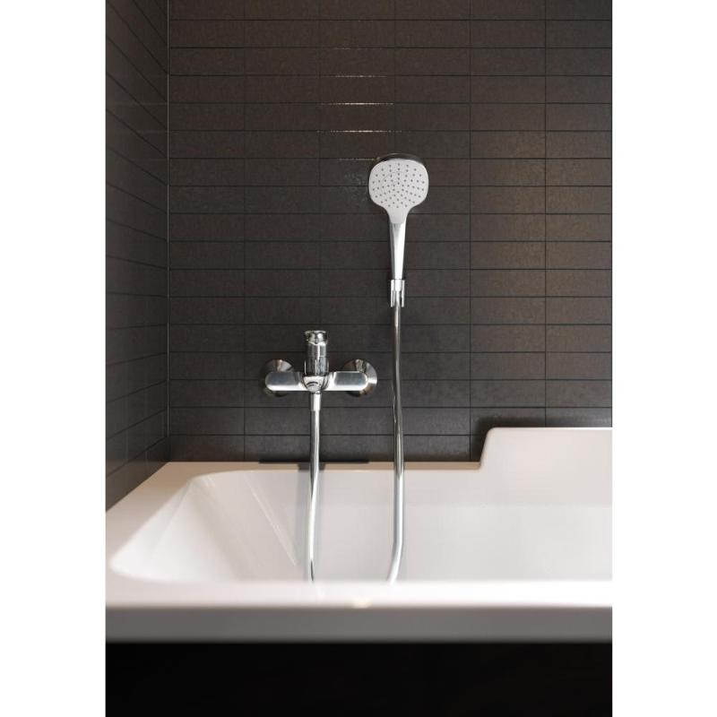 Высококачественный немецкий смеситель подойдет для ванной, обустроенной в современном стиле. Он изготовлен из прочной латуни, не подверженной коррозии. Хромовое покрытие предохраняет изделие от агрессивного воздействия внешней среды. С помощью рычага удобно регулировать температуру и напор потока.