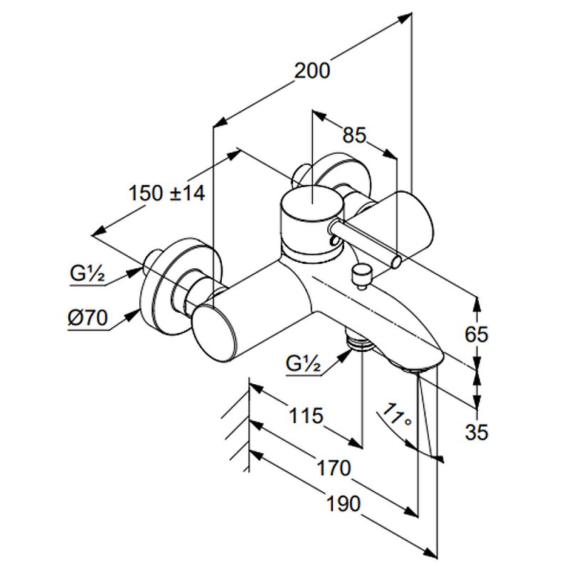 Назначение смеситель для ванны с коротким изливом