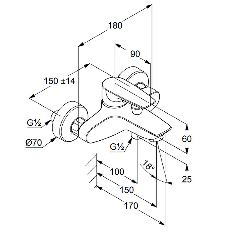 Назначение смеситель для ванны с коротким изливом