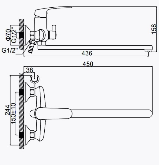 смеситель для ванны с длинным изливом