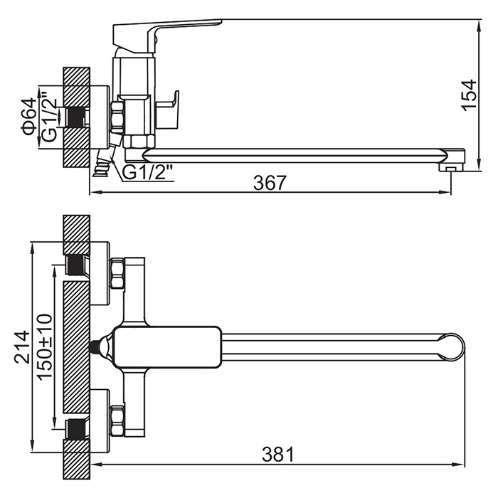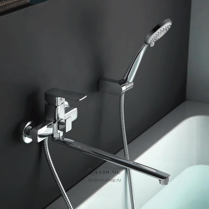 Смеситель с длинным изливом для ванны Ledeme L2280 хром (лейка и шланг в комплекте)