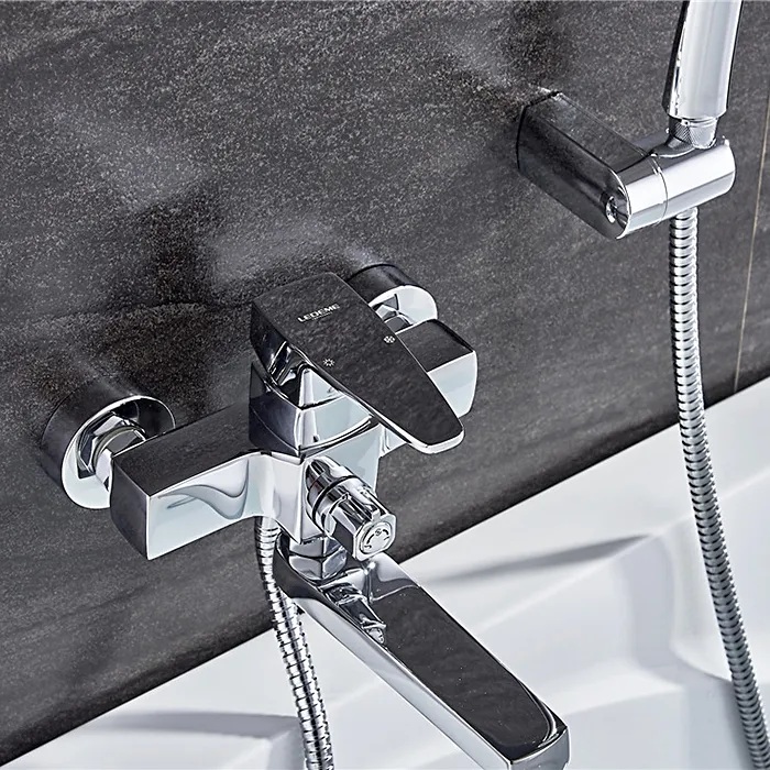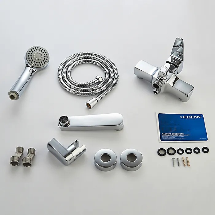 Смеситель со средним изливом для ванны Ledeme L3130 хром (лейка и шланг в комплекте)