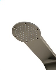 Душевая панель округлой формы из нержавеющей стали "светлая бронза", круглый внутренний тропический душ, 2 круглые форсунки гидромассажа спины, ручной душ со шлангом длиной 150 см, смеситель из латуни на 3 позиции.