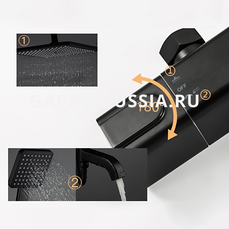 Душевая система с термостатом Gappo G2491-6 черный