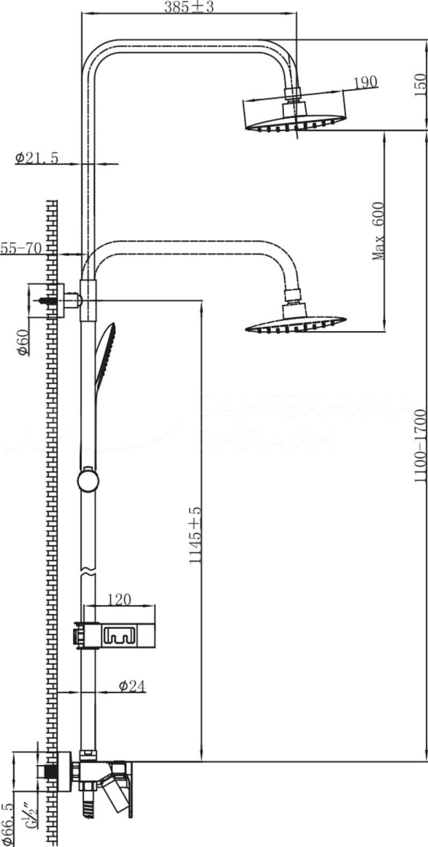 душевые системы со смесителем с изливом