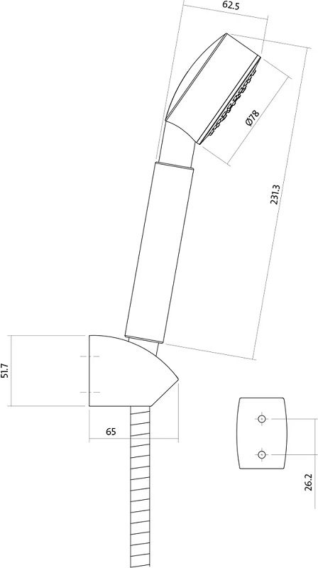 Оснащение: душевой шланг / настенный держатель