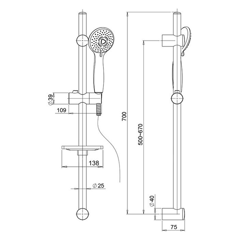 Душевой комплект настенный. Штанга с мыльницой, лейка с анти-известковым покрытием.