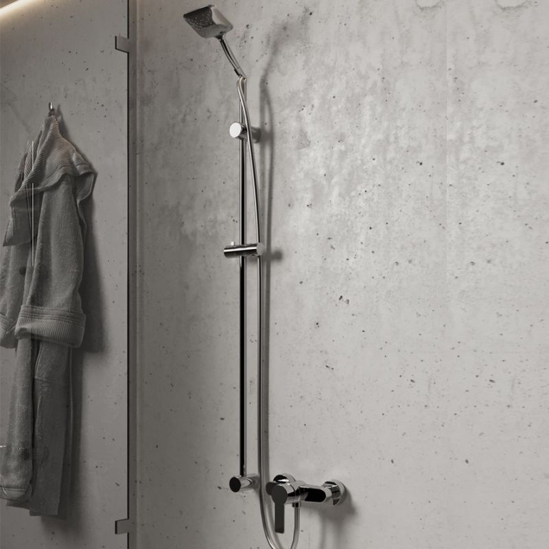 Модель снабжена креплением типа «слайдер», позволяющим быстро и просто регулировать высоту крепления душевой лейки на необходимой высоте.