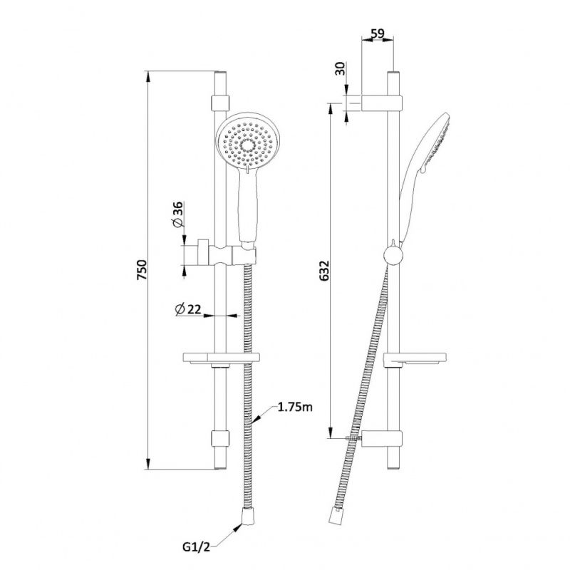 Комплект поставки: ручной душ, штанга, многопозиционный кронштейн, шланг, мыльница, набор креплений, инструкция