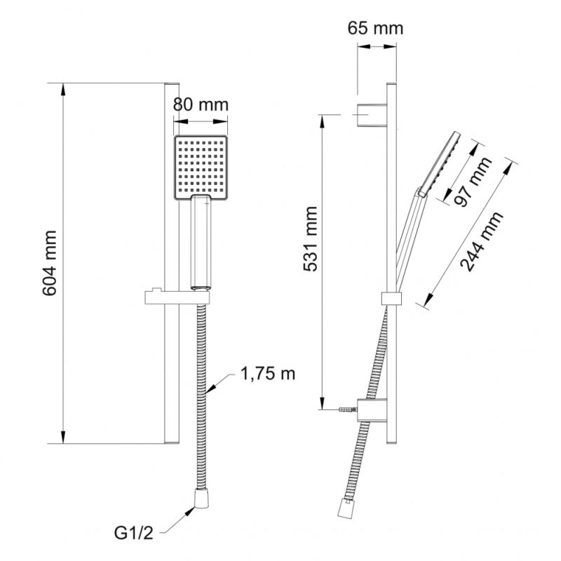Ручной душ: 80х97 мм.