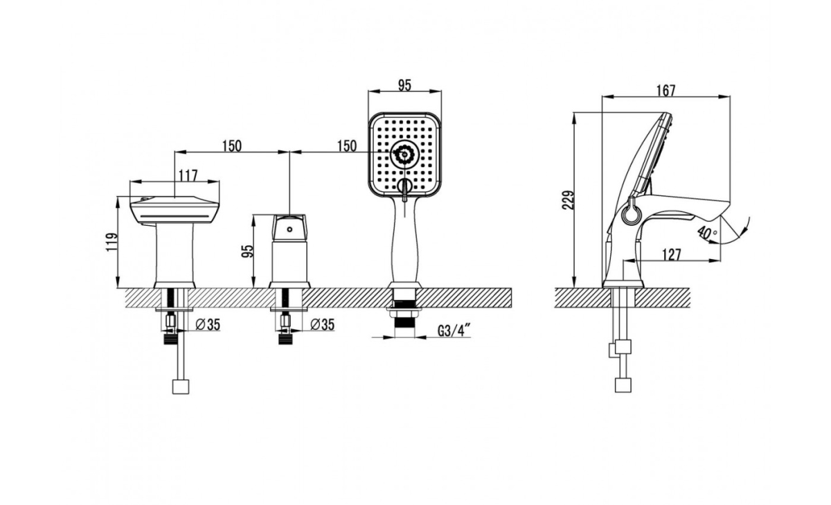 смеситель на борт ванны