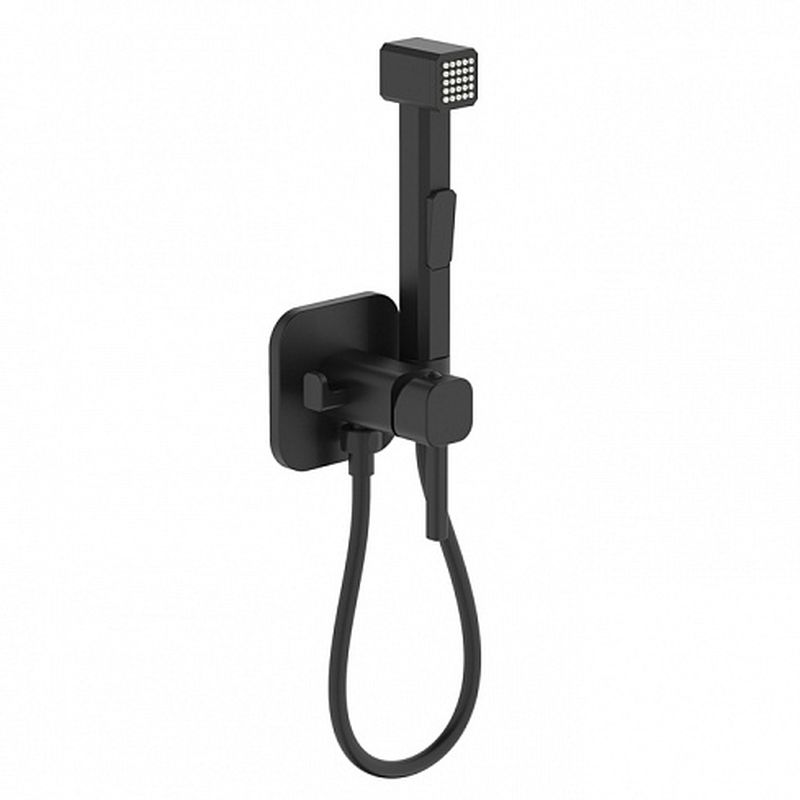Встраиваемый смеситель с гигиеническим душем в стильном матовом черном цвете станет отличным дополнением современной ванной комнаты, привнесет в нее комфорт и эстетику. Имеет крючок для полотенца. Крючок и держатель для лейки при необходимости можно поменять местами. Гигиеническая лейка и гладкий душевой шланг длиной 1,2 метра в комплекте. Экономит пространство и упрощает уборку — благодаря скрытому монтажу в стену (на глубину 40-60 мм) и отсутствию больших выступающих элементов конструкции. Подключается с помощью любых труб, диаметр входных отверстий ½ дюйма.