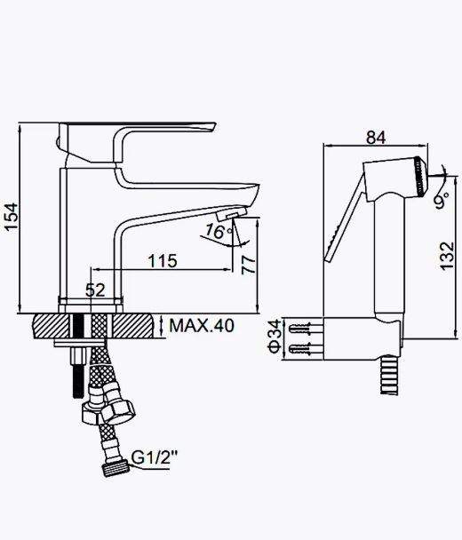 Смеситель для раковины с гигиенической лейкой Ledeme L1254 хром фото 5