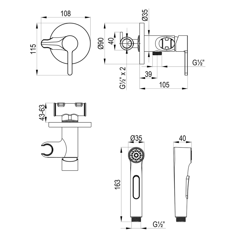 смеситель с гиг душем (скрытый монтаж)