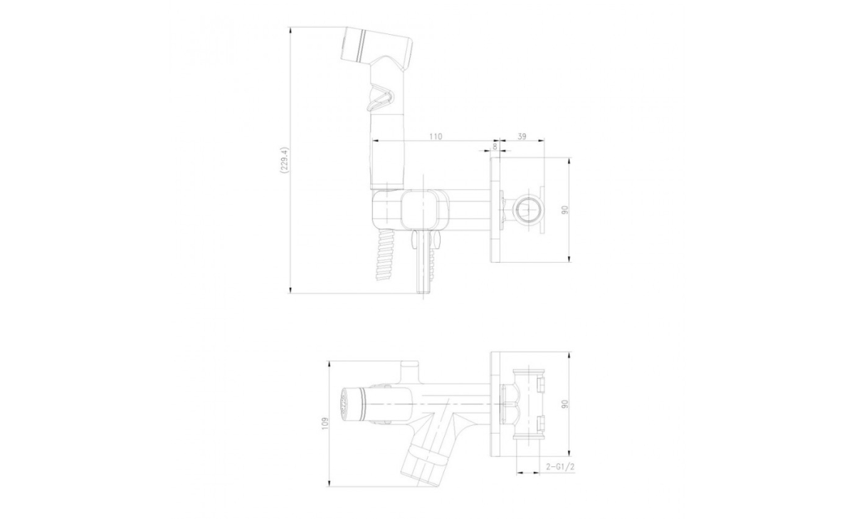 Аксессуары в комплекте: лейка для биде с функцией плавной регулировки, шланг 1,2 м Turn Free, крючок для полотенца встроенный 1шт