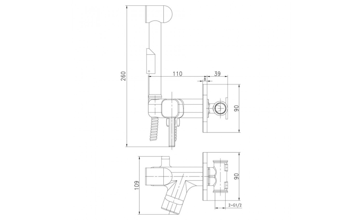 Аксессуары в комплекте: лейка для биде с нажимным механизмом, шланг 1,2 м